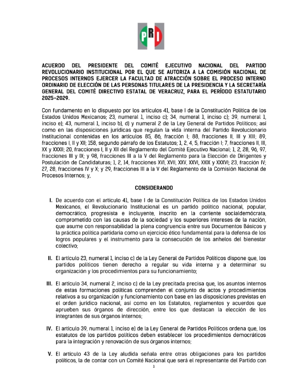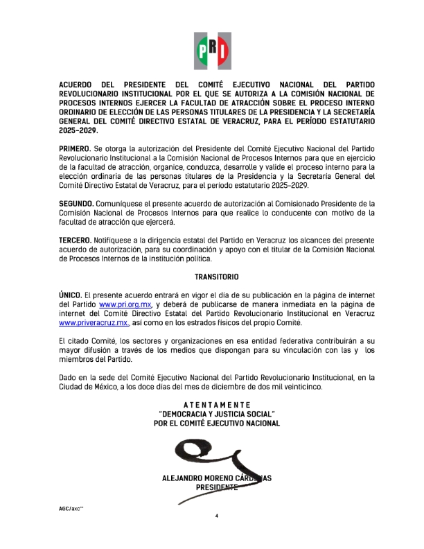 ACUERDO DEL PRESIDENTE DEL CEN DEL PRI